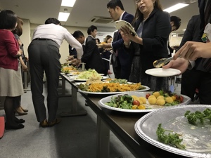 BMS会員 クックデリ株式会社 代表取締役社長 遠藤 保仁様から 「高齢者介護施設のための食事トータルサービス」についてお話いただきました。また、実際に介護施設に供給される料理を懇親会料理として提供いただきました。